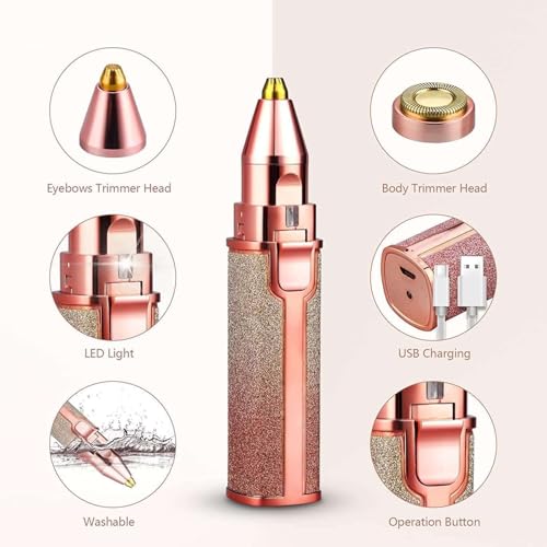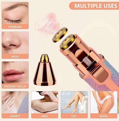 IRQA - ماكينة إزالة شعر الوجه 4 في 1 مع رؤوس وضوء قابلة للاستبدال، ماكينة تشذيب للنساء للأنف والوجه والشفاه والحواجب، ماكينة حلاقة قابلة لإعادة الشحن للنساء (ستايل_1