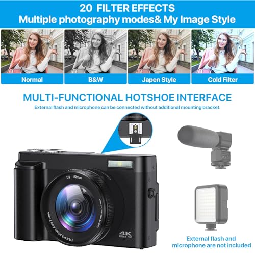 - 【كاميرا تسجيل فيديو بدقة4K مع شاشة قابلة للطي】: تلتقط هذه الكاميرا الرقمية صورًا بدقة 48 ميجابكسل وتسجل فيديو بدقة 4K، والتي يمكن استخدامها لصنع مقاطع فيديو بدقة 4K. تحتوي هذه الكاميرا المخصصة لتصوير المدونات على يوتيوب على شاشة قابلة للدوران 180 درجة بمقاس 7.6 سم حتى تتمكن من رؤية ما يتم تسجيله أو ضبط إطار الصور أثناء التدوين. يمكنك التقاط الصور وتسجيل مقاطع الفيديو من أي زاوية، مما يجعل التدوين الذاتي أسهل.