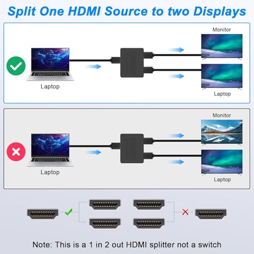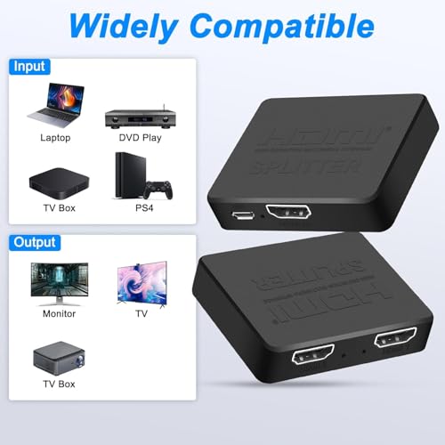 - 【جودة عالية】شاشة تقسيم HDMI الممتدة 4K 1080P متينة ومقاومة للتآكل. باستخدام رقائق متقدمة وقوية، تكون الإشارة أكثر استقرارًا، وناقل الحركة أبعد، وهو أكثر متانة وعملية.