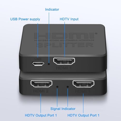 - 【موزع HDMI متعدد الشاشات】شاشتان تعرض نفس الشاشة في وقت واحد، مما يحقق تشغيل متزامن للصوت والفيديو على كلتا الشاشتين. الشاشة الثابتة عالية الدقة لا تومض، ويتم توفير الطاقة عبر مايكرو يو اس بي (متضمنة في العبوة). ملاحظة: النسخ المتطابق/النسخ المتطابق فقط، لا يوسع وضع الشاشة والتبديل أو تبديل الشاشات بين أجهزة متعددة.