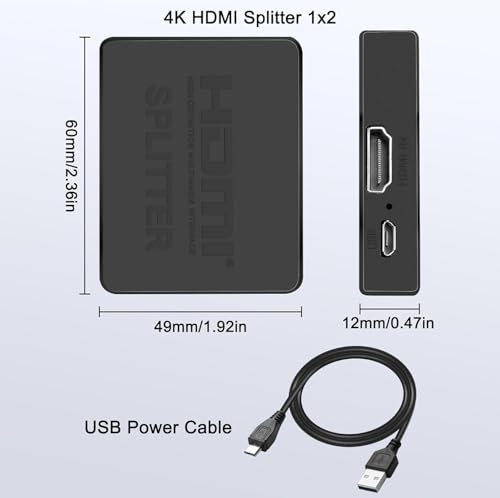 Azuxreza - محول مقسم HDMI بدقة 4 كيه بمدخل ومخرج لمفتاح عرض شاشتين، محول فيديو صوتي 4K HD 1080P للانعكاس/النسخ المتطابق فقط (غير قابل للتمديد)، مع كيبل HDMI/USB