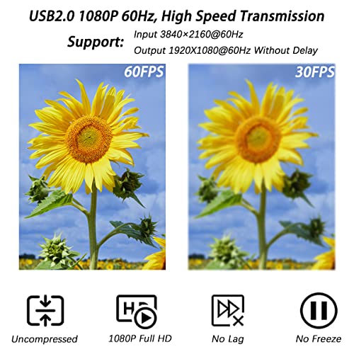 - 【توافق واسع】يعتمد التقاط الفيديو HDMI على شريحة متقدمة مع توافق واسع. يدعم معظم برامج الاستحواذ، مثل في ال سي، او بي اس، ايه ام كاب وما إلى ذلك؛ يدعم بث أو تسجيل صور عالية الدقة لوحدات التحكم في الألعاب أو الاجتماعات أو مقاطع الفيديو/الصوتيات الأخرى على جهاز الكمبيوتر الخاص بك من خلال برنامج التقاط طرف ثالث؛ أو البث المباشر عبر الإنترنت بسهولة. متوافق مع أنظمة التشغيل ويندوز وأندرويد ونظام تشغيل ماك. كما أن منفذ نقل USB 2.0 عالي السرعة يجعل من السهل عليك الحصول على بث في الوقت الفعلي.
