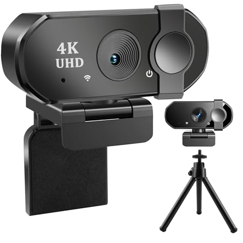 KUTONTECH - كاميرا ويب 4K للكمبيوتر، كاميرا مؤتمرات بدقة UHD فائقة مع ميكروفون مدمج وحامل ثلاثي قوائم، كاميرا ويب بمنفذ USB بزاوية واسعة 120 درجة بغطاء للخصوصية، تعمل مع/زووم /تيمز/البث المباشر وأكثر من كوتونتيك
