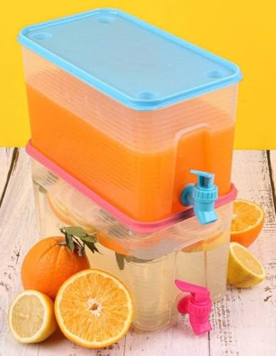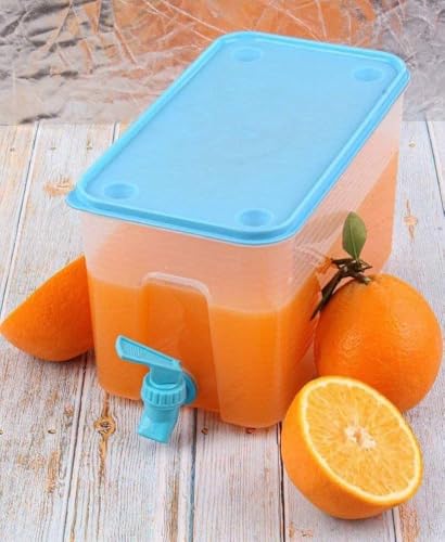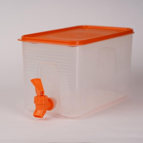 Generic - موزع عصير بلاستيكي شفاف بسعة 4 لتر مع صنبور وغطاء برتقالي، حاوية مستطيلة لتقديم المشروبات الباردة/