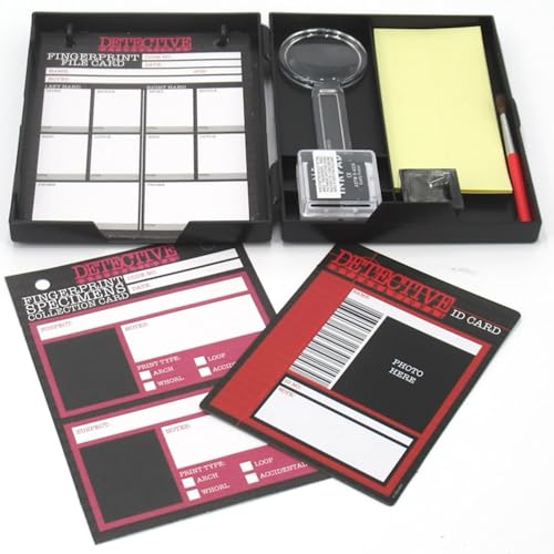 - تحتوي المجموعة على 10 (10) بطاقات بصمات الأصابع وفرشاة وسادة ختم مسحوق الغبار وعشرين (20) ملصقًا يستخدم لجمع بصمات الأصابع