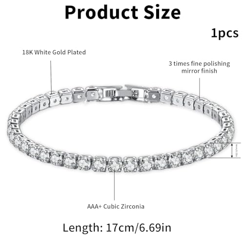 ShiningUU - سوار للنساء مقاس 4 ملم، سوار تنس مرصع بالكريستال اللامع، اساور الصداقة، اساور الصداقة، سوار الزركونيا الماسي للسيدات، سوار للنساء والبنات، هدايا للام والاخوات