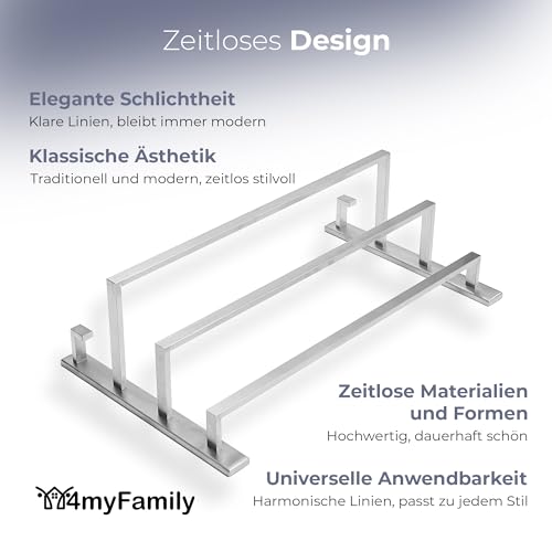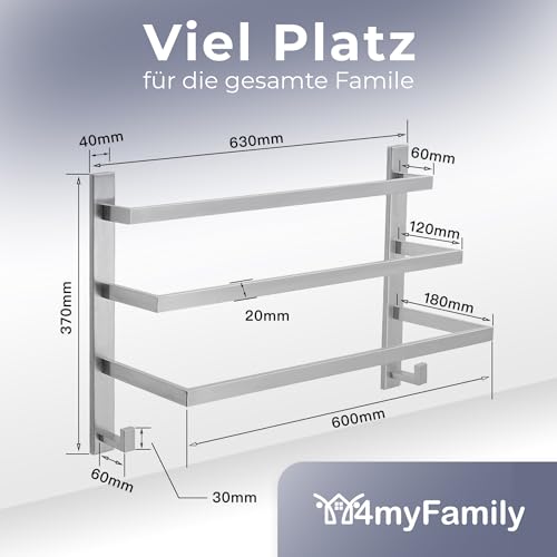 4myFamily - حامل مناشف فاخر لا يحتاج إلى ثقب للحمام | بلا براغي لتكوين البكتيريا مخفية عن طريق التثبيت على الحائط | حامل مناشف الحمام مع خطاف منشفة - ستانلس ستيل SUS 304 مقاوم للصدأ