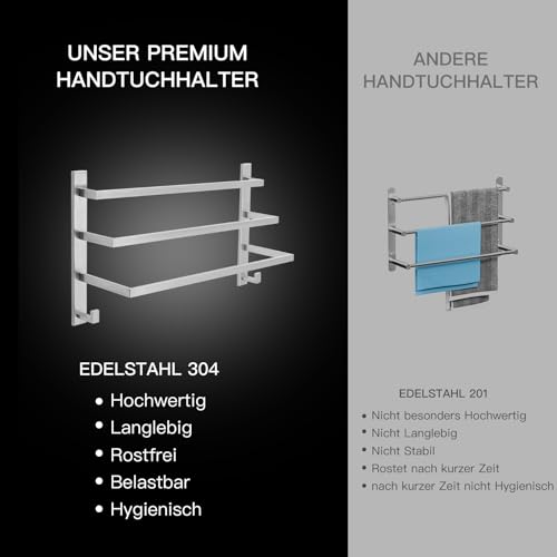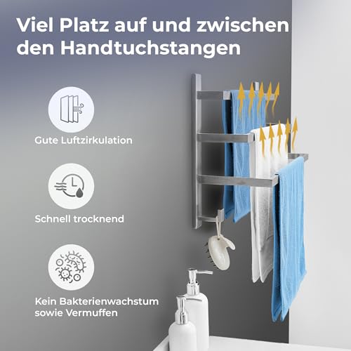 - لا توجد بكتيريا - بفضل قضبان المناشف العريضة، يضمن حامل المناشف الخاص بنا دوران الهواء بشكل جيد، مما يسرع الجفاف ويمنع تكوين البكتيريا.