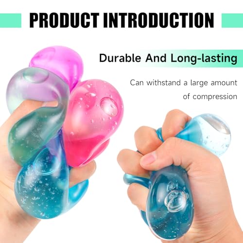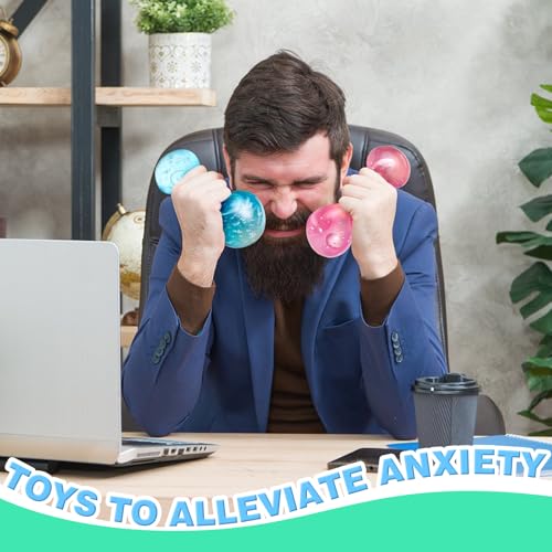 MJOGGOTT - 4 عبوات من كرات الضغط الإسفنجية، لعبة ثلج إسفنجية حسية ملونة للكبار والأطفال، أفضل تخفيف للقلق، كرات إسفنجية مملوءة بالجل عالي الكثافة للأعمار من 3 سنوات إلى الكبار