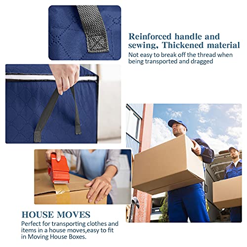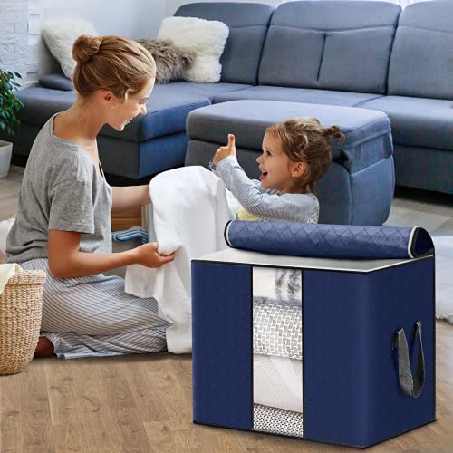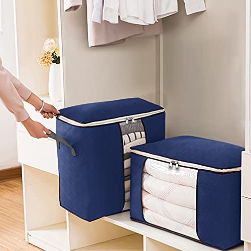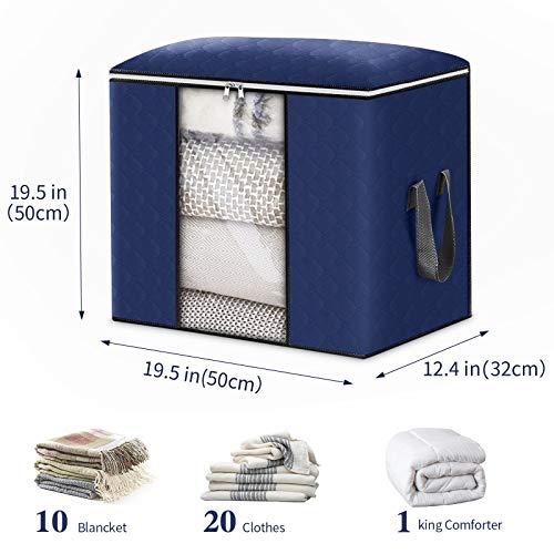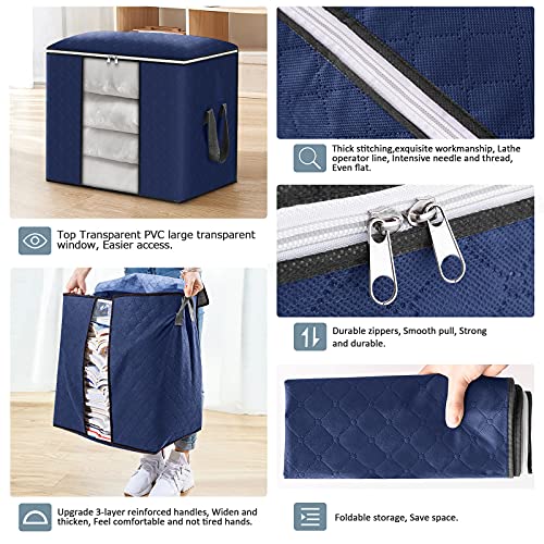 Spaceshoop - 4 عبوات من شنط التخزين المنظمة القابلة للطي مع سوستة مقابض مقواة ونافذة شفافة شنطة تخزين ملابس بسعة كبيرة قماش سميك ومضاد للعفن للرطوبة مناسبة للالحفة والبطانيات واغطية السرير ازرق غامق