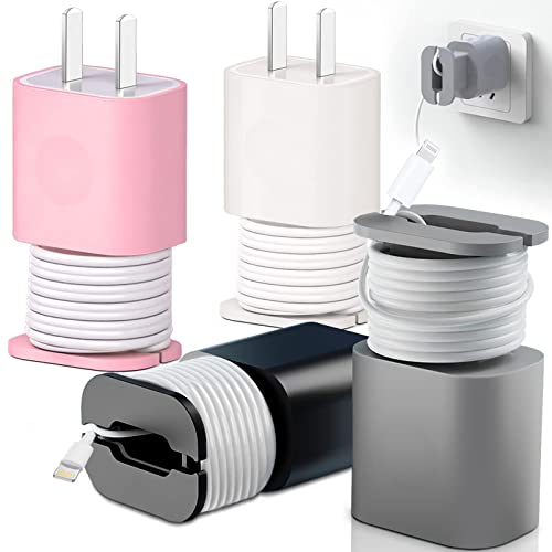 - واقي شاحن سيليكون 2 في 1 من 4 قطع، لفافة كيبل بيانات 18 واط/20 واط، كيبل بيانات شاحن الهاتف المحمول، اداة تخزين حماية ضد الكسر، مناسب لشاحن 11/12 (زهري، رمادي، اسود، شفاف)