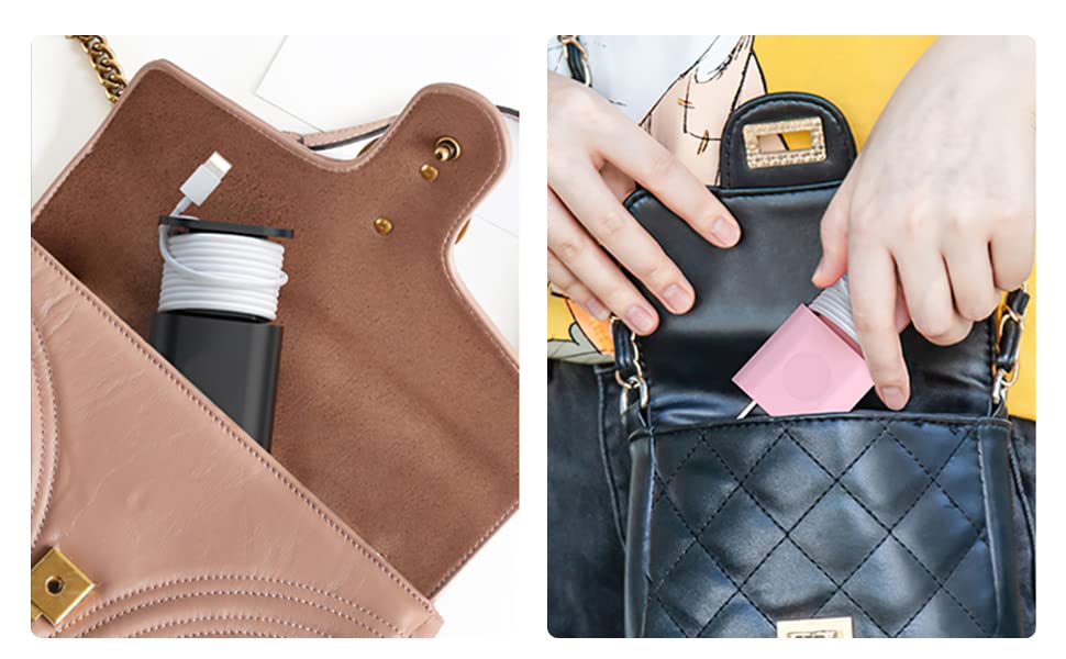 - سهل الحمل ---- تخزين الشاحن وكابل الشحن بشكل مثالي، 7.6 × 4.8 × 3.3 سم، صغير ولا يشغل مساحة، ويمكن حمله عند الخروج، ويمكنك العناية بالشاحن.