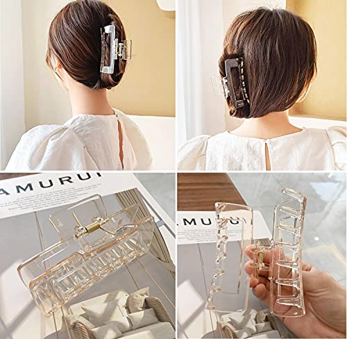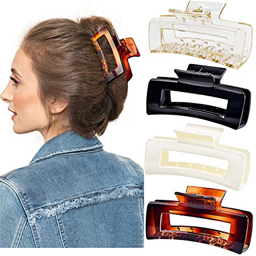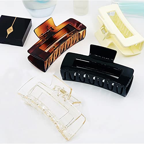 KOAOAUS - مشابك شعر مخلبية كبيرة من 4 قطع، 8 سم، للشعر السميك، مشبك مخلب كاواوس للنساء والفتيات، مشابك كبيرة من الأكريليك غير قابلة للانزلاق، مشابك شعر مستطيلة كبيرة لتثبيت قوي (لارج)