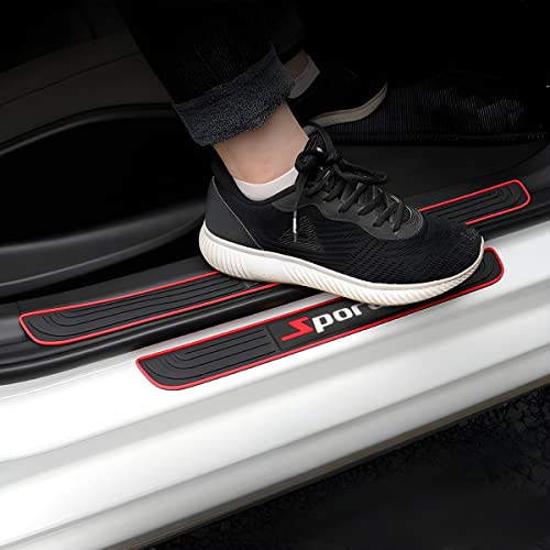 BLAU GRUN - 4 قطع من واقيات لوحة عتبة باب السيارة، واقيات عتبة باب السيارة، واقي عتبة باب السيارة، دواسة باب امامية وخلفية من مطاط PVC مضادة للخدش، اكسسوارات السيارات لمعظم المركبات (اسود/ رياضي)