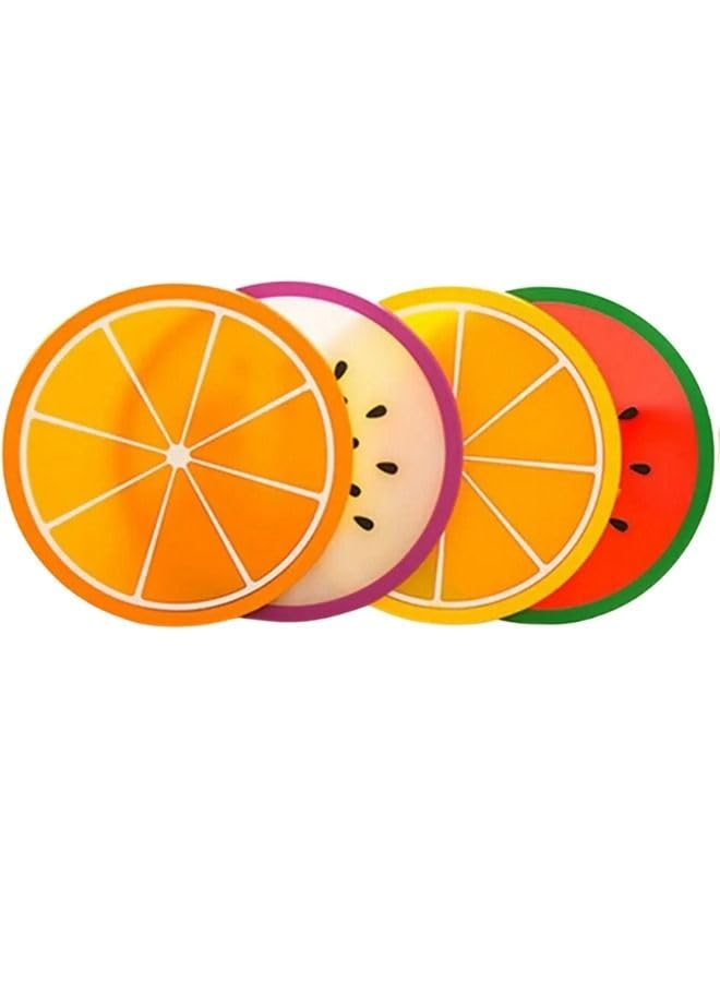generic - 4 قطع من قواعد الاكواب المصنوعة من السيليكون على شكل فاكهة، غير قابلة للانزلاق، اكواب المشروبات الساخنة لتزيين طاولة المنزل، اكسسوارات المطبخ - متعددة الالوان