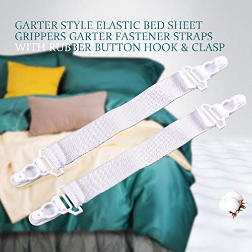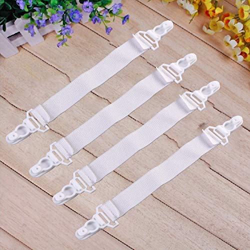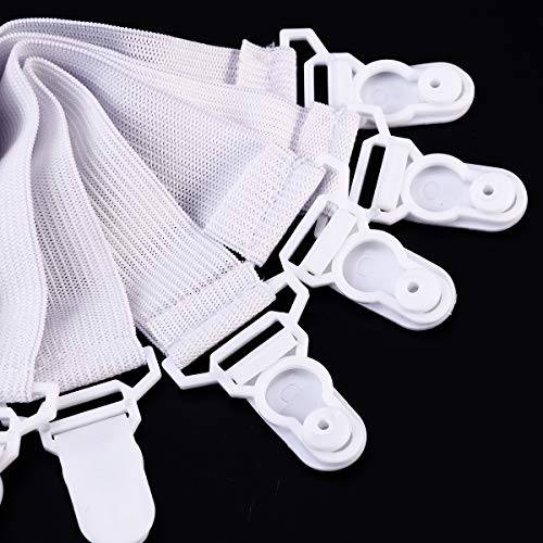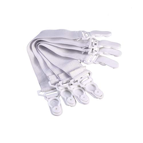 Garneck - مشابك ملايات السرير المرنة بنمط الرباط مع خطاف زر أستك ومشبك، 4 قطع (لون أبيض)، بلاستيك