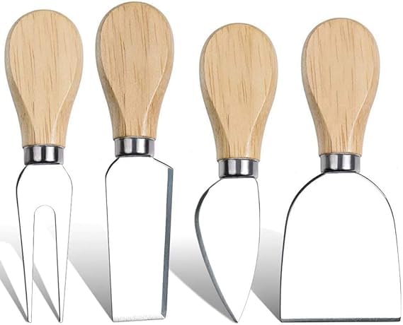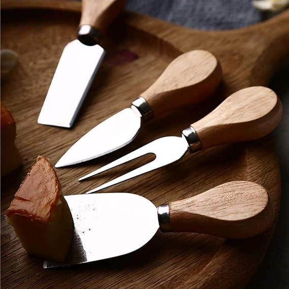 - مجموعة من 4 قطع تتضمن سكين شبه قلب لدهن الجبن، وشكلان مستطيلان للتقطيع والتوزيع وشوكة واحدة للتقديم