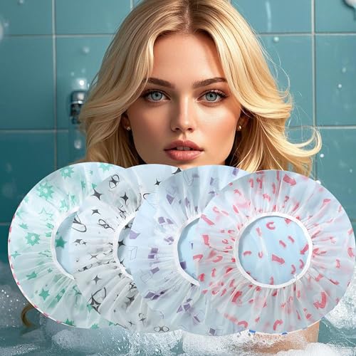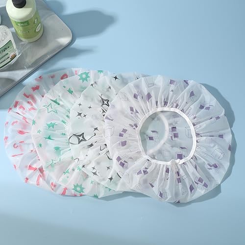 LEKAYIHU - قبعة استحمام قابلة لإعادة الاستخدام ومقاومة للماء ومناسبة للشعر الطويل للنساء والرجال، لون كالر باترن، 4 قطع