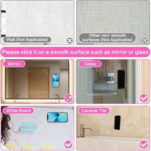 Generic - حامل موبايل سيليكون بقاعدة لاصقة، قاعدة غير قابلة للانزلاق مع مراية خلفية للتسلية والتصوير الذاتي وتسجيل فيديوهات تيك توك، متوافق مع موبايلات آيفون وأندرويد (وردي) 4 قطع