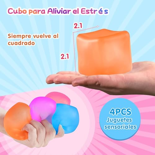 Generic - 4 قطع، مكعبات اسفنجية حسية مضادة للتوتر للكبار، مكعبات تخفيف التوتر (ارجواني، ازرق، زهري، برتقالي)