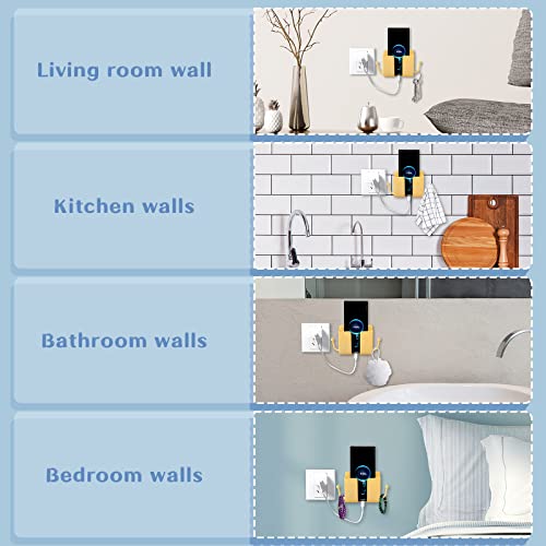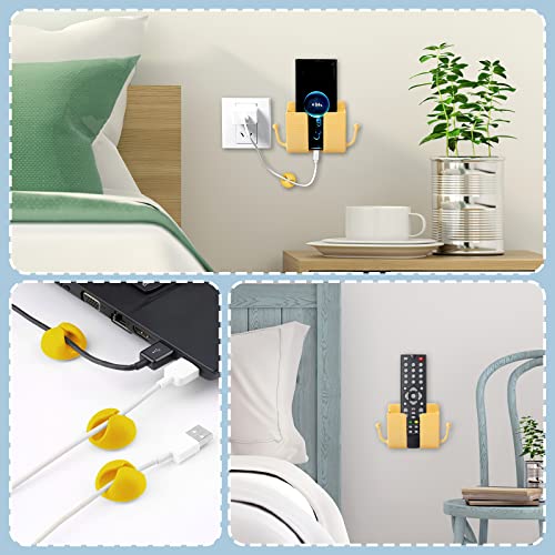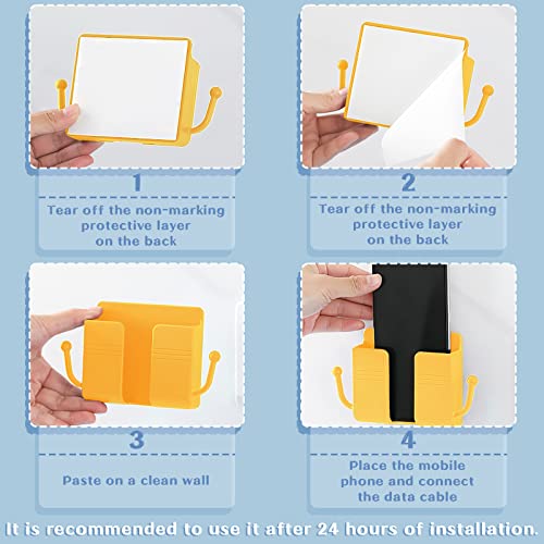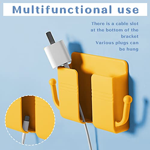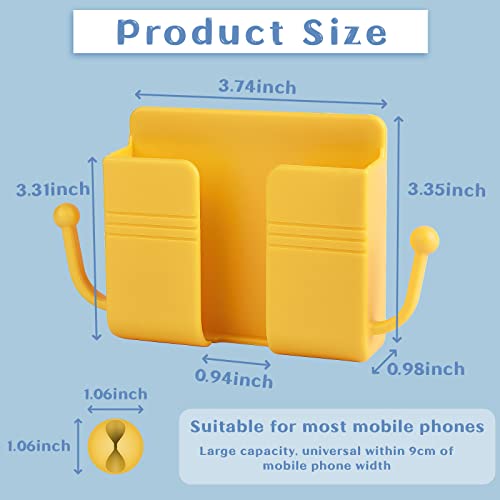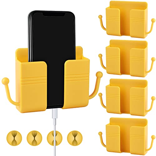 Mojoker - 4 قطع حامل جوال ذاتي اللصق يثبت على الحائط مع خطافات و4 مشابك كيبلات هاتف لشحن الهاتف وحامل ومنظم جداري لجهاز التحكم عن بعد في المطبخ وغرفة المعيشة اصفر بلاستيك منموجوكر