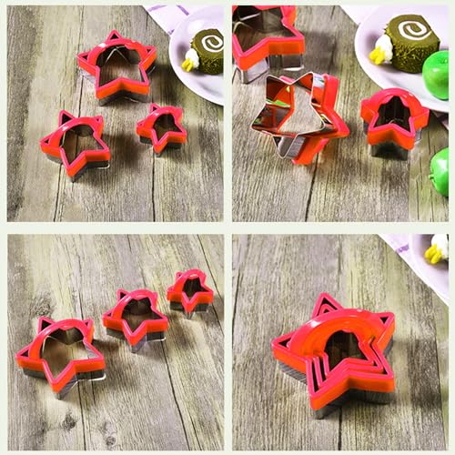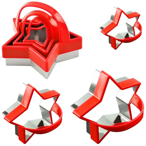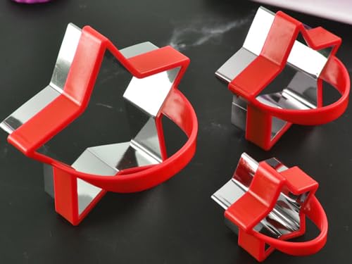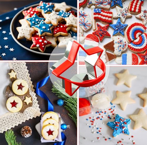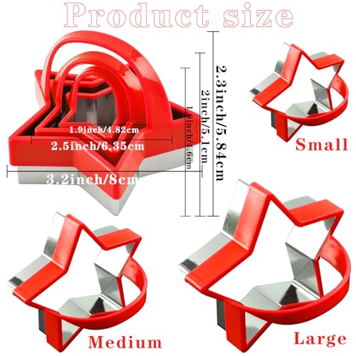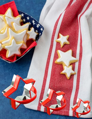 Gansita - قطاعات بسكويت على شكل نجمة ليوم 4 يوليو مع مقبض، قطاعة بسكويت من الفولاذ المقاوم للصدأ على شكل نجمة خماسية لعيد الاستقلال، قالب صغير لضغط بسكويت وساندويتش وخبز وكيك جبن (مجموعة من 3 قطع، أحمر)