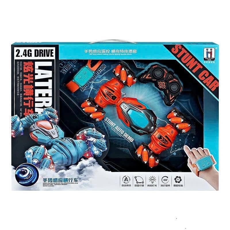 Generic - سيارة ريموت كنترول 4WD قابلة للشحن، سباق بـ 4 اتجاهات مع حيل وشقلبات، تعمل بالتحكم عن بعد، لون برتقالي