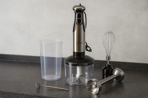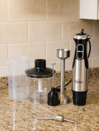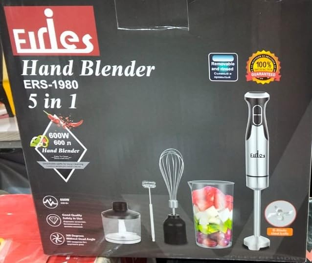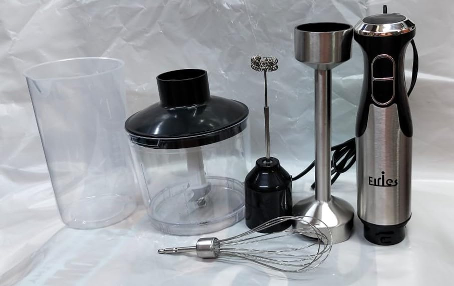 Generic - مجموعة خلاط يدوى 5 فى 1 من EIries ستانيلس ستيل بقدرة فعلية 600 وات مع مضرب نسكافية وقطاعة 500 مل ومضرب بيض وكوب مع سرعتين شفرات ستانيلس حادة محرك نحاسي قوى و سهل التنظيف متعدد الاستخدام -ERS1980