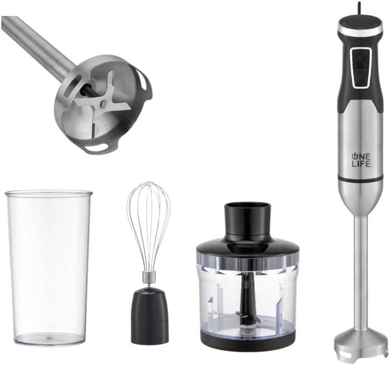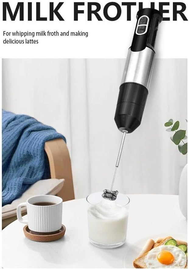 • متعدد الوظائف: خمس أدوات في واحد تشمل خلاط يدوي، مضرب نسكافيه، قطاعة 500 مل، مضرب بيض، وكوب للخلط