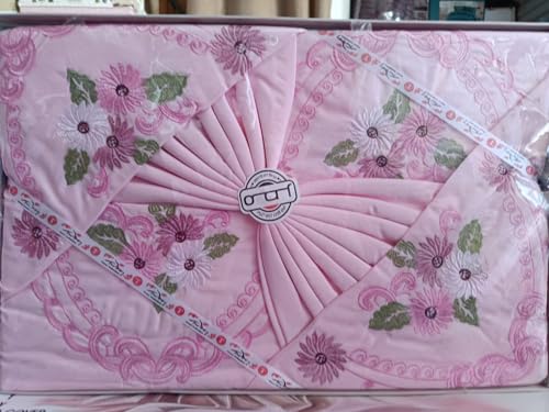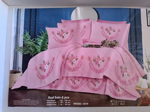 Generic - طقم ملاية سادة مطرز مطعم بالجوبير تركي - 5قطع - مستورد - مقاس 240*260 سم - لون بينك 26