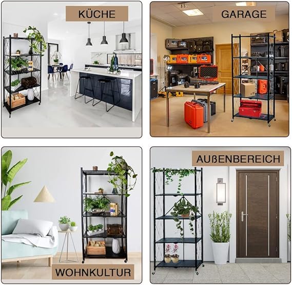 Generic - الاستاند المطور العبقري معدن 5 دور الاصلى💥وبعجلات سعة التحميل 250 كجم🦾يستخدم لتنظيم اجهزة المطبخ زي الميكرويف الفرن الكهربائي الساندوتش ميكر الكيتشن ماشين🦾يستخدم ايضا كمنظم بالحمام🦾اللون اسود💥
