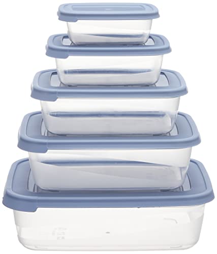 bager - طقم ثلاجه مستطيل بلاستيك شفاف بغطاء الوان 5 قطع (3لتر 2لتر 1.2لتر 0.6لتر 0.3لتر)- شفاف * سماوى