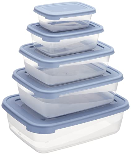 - طقم ثلاجة مستطيل بلاستيك شفاف بغطاء ملون - 5 قطع (3 لتر 2 لتر 1.2 لتر 0.6 لتر 0.3 لتر)- شفاف * سماوي