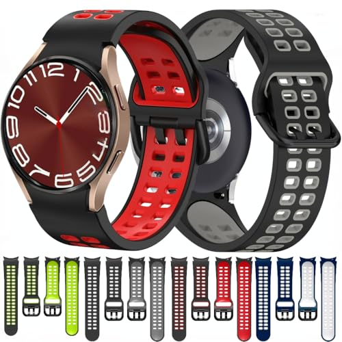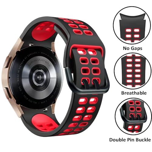 ELMO3EZZ - سوار ساعة بديل من السيليكون بلونين من المعز، متوافق مع ساعة سامسونج جالاكسي 5/5 برو مقاس 45 ملم وجالاكسي 4 كلاسيك مقاس 46/42 ملم وجالاكسي 5/4 مقاس 44/40 ملم، مع طرف بنهاية منحنية - أسود وأحمر