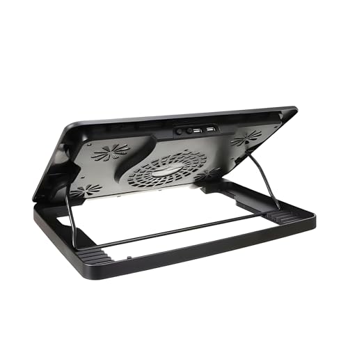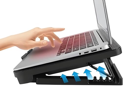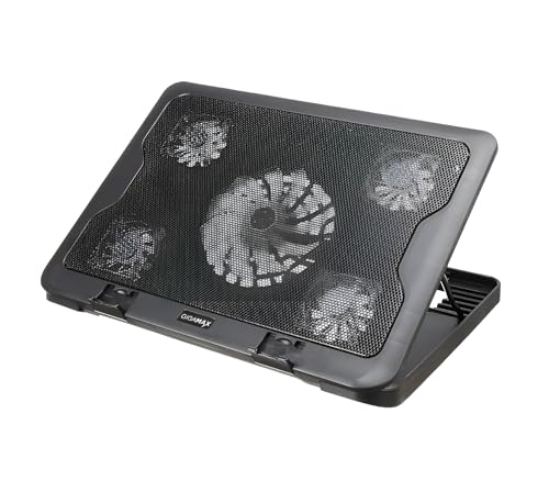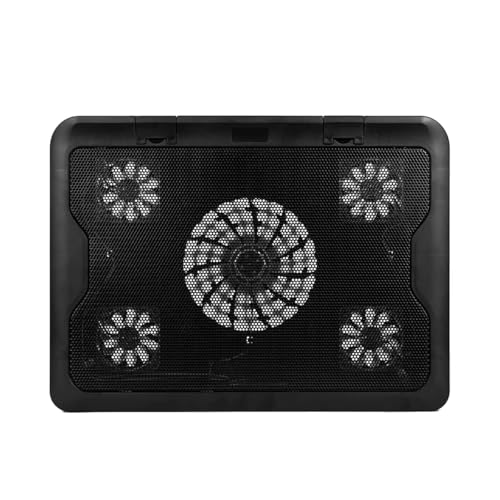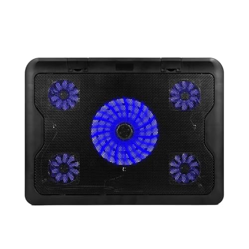 Generic - مروحة لاب توب بخمس مراوح تبريد قوية بقوة 5 وات - 6 مستويات ارتفاع - إضاءة ليد زرقاء - منافذ USB مزدوجة - متوافقة مع الأجهزة حتى 15.6 بوصة - جيجاماكس GM88