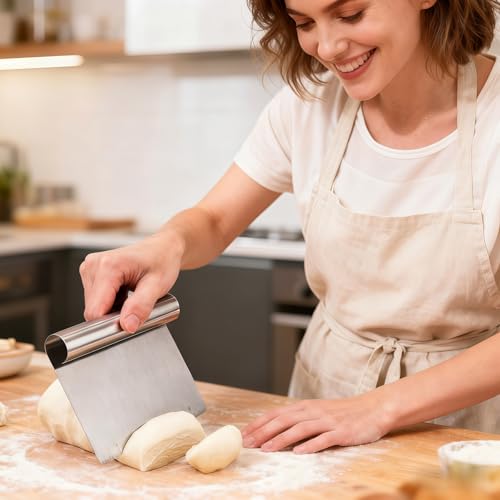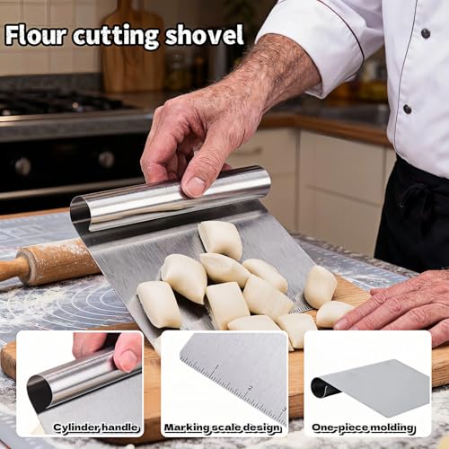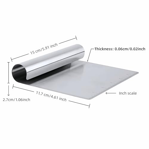 - قياسات دقيقة للحصول على نتائج مثالية - تتميز بمقياس قياس انش محفور على الشفرة. يمكنك تقسيم العجين بسهولة أو قطع شرائح المعجنات الموحدة أو قياس المكونات بدقة، مما يضمن الخبز والطهي المتسقين في كل مرة.