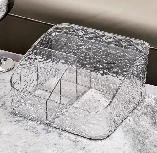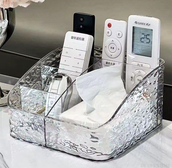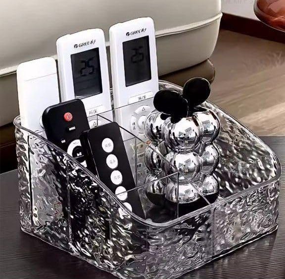 - منظم متعدد الاستخدامات: صندوق تنظيم أكريليك شفاف مقسم إلى 5 خانات منفصلة لتنظيم وترتيب الريموتات ومستحضرات التجميل والإكسسوارات المختلفة