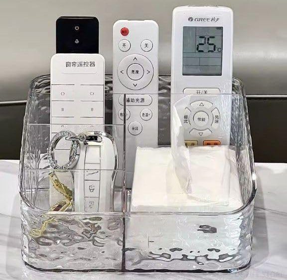 - تنظيم مثالي: يحتوي على أقسام متعددة الأحجام مناسبة لحفظ ريموتات التكييف والتلفاز وأدوات المكياج والفرش والأقلام والهواتف