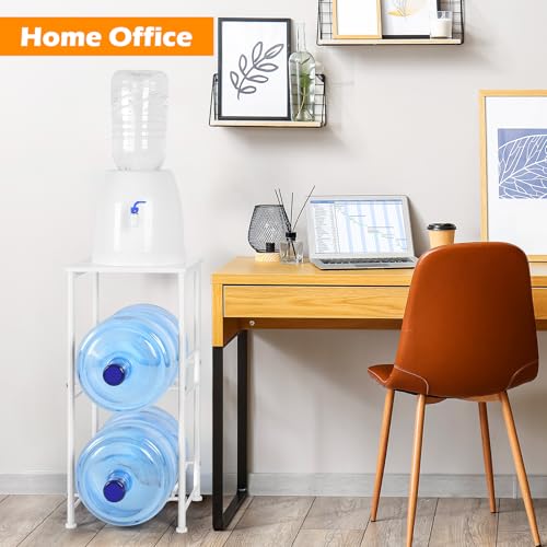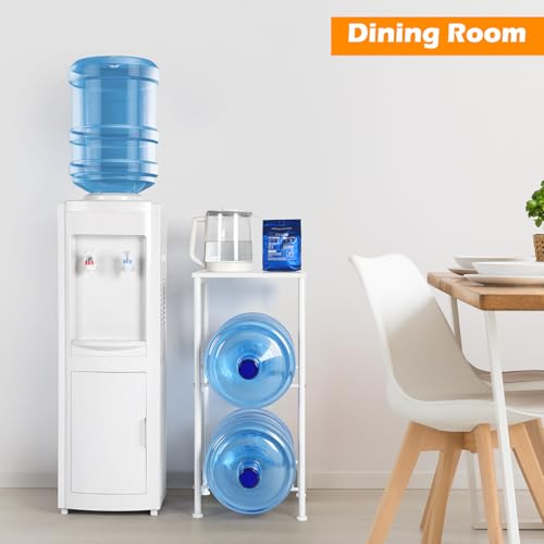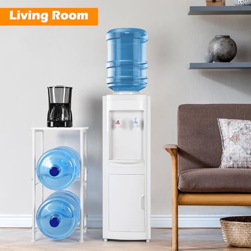 OYEAL - حامل موزع مياه بسعة 5 جالون مع رف علوي، حامل زجاجة مياه سعة 5 جالون مع فتحتين واطار معدني دائري للمطبخ وغرفة الطعام والمكتب، ابيض