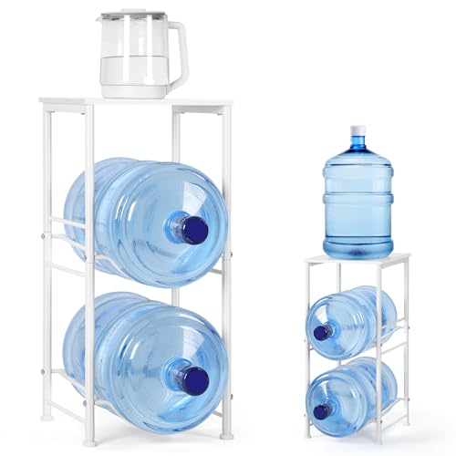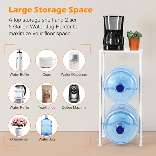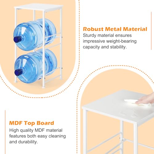 - 【حامل موزع المياه مع رف علوي】: يتكون من 2 رف إبريق ماء سعة 5 جالون ورف علوي من خشب ليفي متوسط الكثافة بقياس 13 انش طول × 13.4 انش عرض، يوفر حامل زجاجات المياه سعة 5 جالون مساحة إضافية لوضع محطة القهوة الخاصة بك، أو بمثابة طاولة لتخزين أدوات المطبخ الأساسية، أو عرض أكواب الديكور المفضلة لديك.