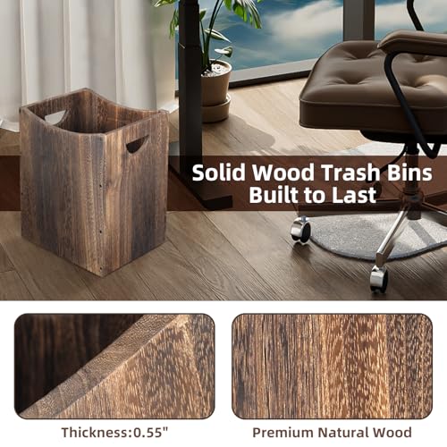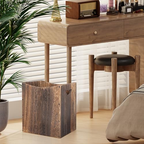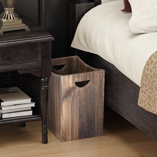 Ciao Stilista - سلة مهملات خشبية سعة 5 جالون بتصميم منحني، سلة مهملات مستطيلة بتصميم ريفي عتيق، سلة تخزين مع مقابض لغرفة النوم والمكتب وغرفة المعيشة