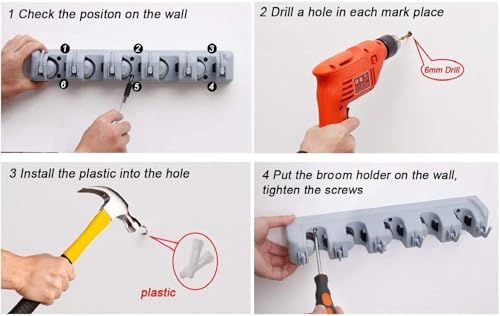 - تنظيم متكامل لأدوات التنظيف: تخلص من الفوضى نهائيًا! هذا الحامل الخماسي يوفر لك حلاً منظماً لتعليق مكانس اليد والمكانس العادية والجاروف (الرفش) وممسحة الأرضيات وفرش التنظيف وغيرها في مكان واحد، مما يوفر مساحة أرضية كبيرة ويسهل عليك الوصول إلى أي أداة تحتاجها في ثوانٍ دون بحث أو تعثر.