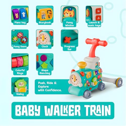 Generic - لعبة تدريب اطفال تعليمية 5 في 1، مشاية، سيارة الركوب، مركز نشاط، لعبة متعددة الوظائف لدعم الخطوات الاولى لطفلك وتطوير المهارات (ازرق)