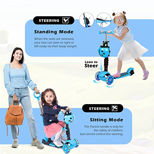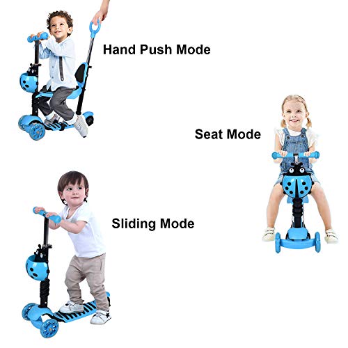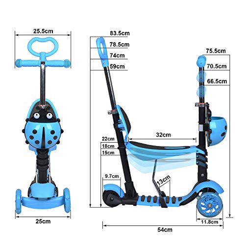 - 🛴【سكوتر أطفال 5 في 1】: سكوتر الأطفال مع مقبض دفع ومقعد مجمع، إنه عربة عروسة، مشاية للأطفال، دراجة توازن للأعمار من 1 إلى 3 سنوات. أثناء إزالة المقعد والمقود فإنه سكوتر للأطفال من سن 3 إلى 8 سنوات، توفر السلال اللطيفة مساحة تخزين.