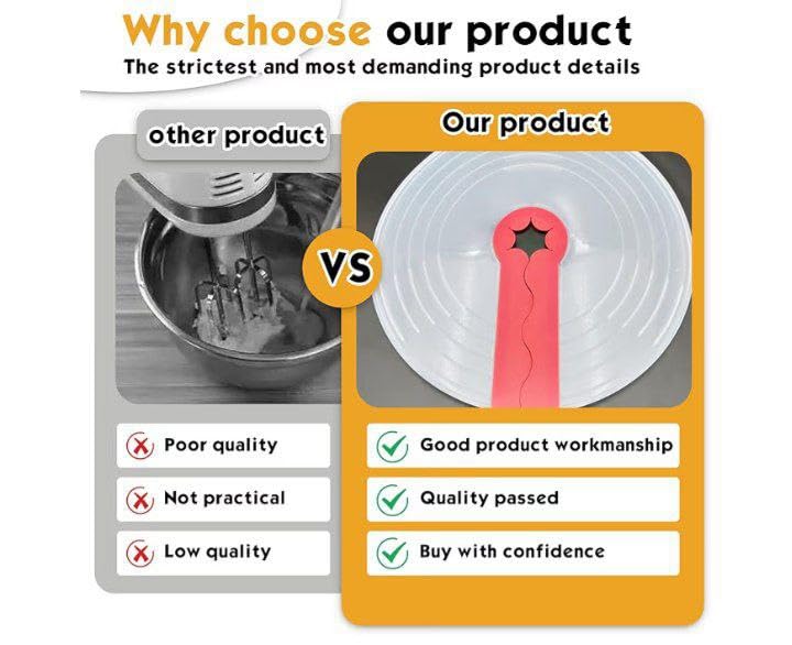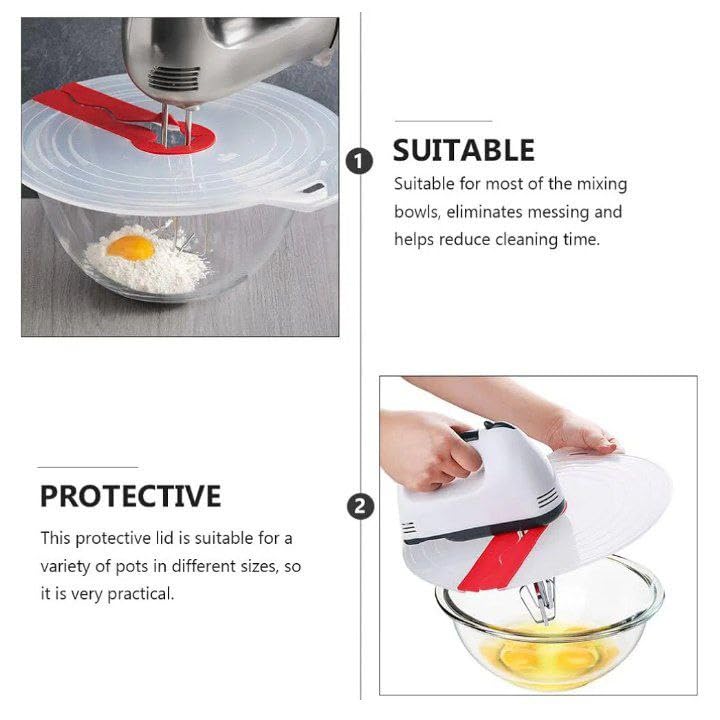 - ️ ️ حماية فعالة ضد تناثر: حافظ على مطبخك نظيفًا أثناء خلط المكونات مع غطاء الحماية الذكي هذا. مصمم لمنع تناثر البيض والخليط والعجين والكريمة والصلصات خارج الوعاء، مما يخلق حاجزًا واقيًا يحافظ على المكونات محفوظة. يساعد ذلك في الحفاظ على منطقة طهي مرتبة ويقلل من الحاجة إلى التنظيف المستمر أثناء تحضير الطعام، مما يجعل مهام الخلط أسرع وأكثر ملاءمة.