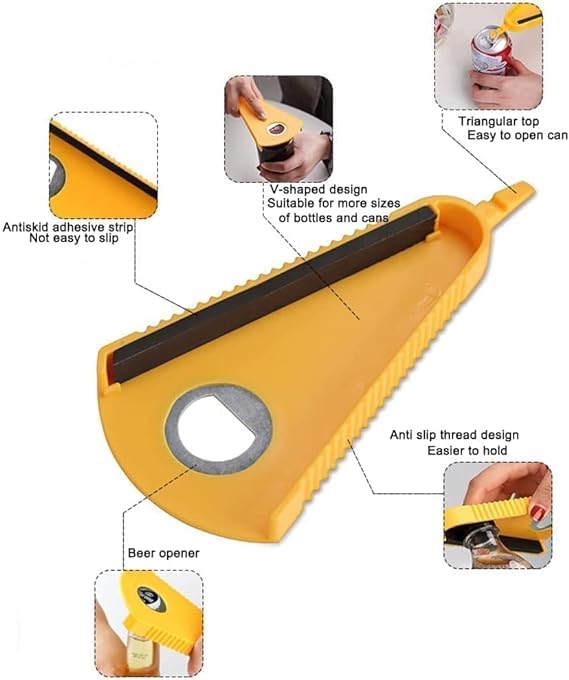 - ✔ 5 في 1: فتاحة زجاجات مدمجة متعددة الوظائف. مصنوعة من البلاستيك والسيليكون عالي الجودة، وهي خفيفة الوزن وقابلة للحمل.