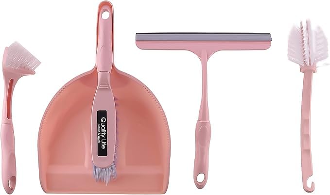 Generic - مجموعة كنس 5 في 1، مجموعة مكنسة ومكنسة وفرشاة متعددة الوظائف لازالة الغبار، ممسحة يدوية صغيرة لتنظيف سطح المكتب والمكتب والمنزل (مجموعة من 5 قطع لون (بينك)