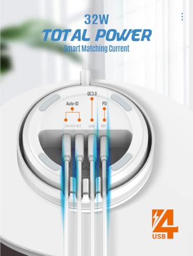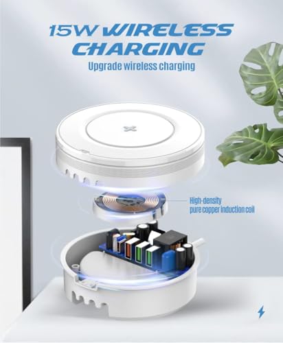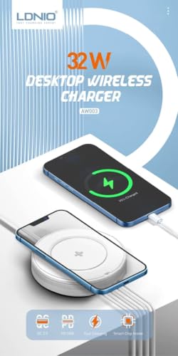 CHARGE OASIS - قاعدة شحن لاسلكية 5 في 1 بقدرة بريطانية 32 واط | كوالكوم فاست تشارج 3.0، منافذ معرف تلقائي وبي دي |، أبيض، لهاتف خلوي