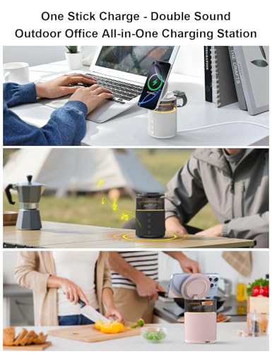 - 1. باور هاوس 5 في 1 متعدد الوظائف: يجمع بسلاسة بين الشحن المغناطيسي السريع لسماعات ايربودز وايفون وشحن ساعة ابل ومكبر صوت ستيريو ممتاز وضوء ليلي يتم التحكم فيه بأزرار. يزيل هذا الحل الشامل الكابلات المتشابكة ويحل محل أجهزة متعددة - مثالي للمنزل أو المكتب أو السفر أو التخييم.