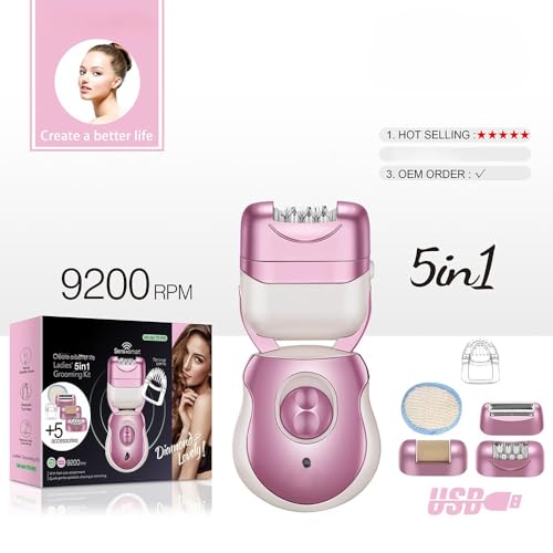 Generic - مجموعة العناية الشخصية النسائية 5 في 1 - إزالة الشعر، تشذيب الجسم - شحن USB - 9200 لفة/دقيقة - متعددة الوظائف للعناية المتكاملة بالبشرة والجمال.